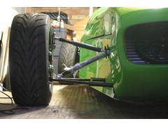 Getting it on it's wheels shows what suspension work is needed. That's 8 degrees of negative camber!