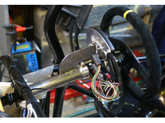 Mods to flappy paddle system. Removed gear cable mount (to later fit Flatshifter sensor) and welded digital dash mounting in place.