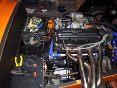 engine is a 2 litre pinto out of a sierra, which i think was an 88/89 model. sorry, no idea what the carb is - but hopefully mark/colin will see this