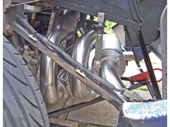 It's a 3L Ford V6 Mid engined car with Twin Turbos, Twin Sports Cats, and Twin Cans, in 2 1/2" 316 Stainless Steel.