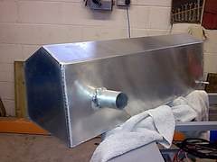 The basic plan is a baffled tank, just like the sump i made, with a small (5cm dia) sump at the front, fuel take-off at the top and attached to a pipe