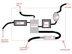 so here is a very quick sketch of my plan so far - have I missed anything ? fuel px reg will be at engine post hp filter - is this correct?