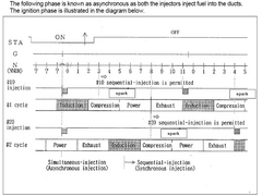 the sensor outputs vs the engine cycle, on a startup then into running mode.