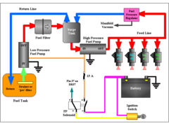 The pressure regulator comes after the fuel rail BTW unlike on carbs.