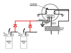 so plan 2 is to connect a diode from any two coils to the rev counter and select "4 cylinder" or 4 diodes from all 4 coils and select