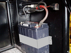 screwed rod fit through the above holes with wingnuts then drill holes into scuttle behind the front vertical of the battery so that the screwed rods