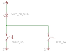That's how mine is wired... except the 'test switch' is attached to my handbrake. Handbrake on, or low fluid, lights the lamp.
