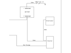 On modern tintops usual practice is to wire the main alternator output to engine fuse box side of the main Megafuse.