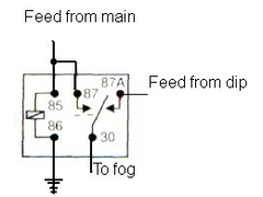 ---Main-------------->DIODE>----------|--------FOG SWITCH ----------FOG RELAY / LAMP----