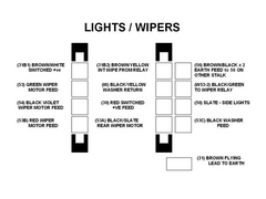 On re-checking the O/S switch, (lights & wipers), I discovered that the pinout wire colour codes are the complete inverse of those shown in