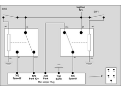Wiring between Mini wiper motor and sierra switch is given on Rob Lane's website under "cars data"