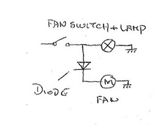 If the diode is put in the positive feed to the fan, it will have to have a high enough current capacity to manage the fan load.
