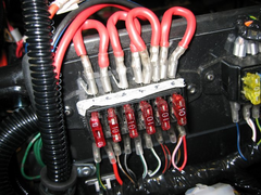 See picture. I did this temporarily whilst I was testing my loom. The loops are to supply each fuse from battery and switched from ignition. On a