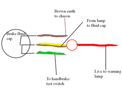 so the switch on the handbrake also serves as the test button for the float switch and bulb failure moniter , so in the event of fluid loss your