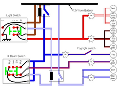 My problem is that I can't find the hi-beam switch in the Haynes manual so I don't know how it's wired up. I've metered the