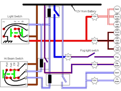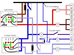 I couldn't work out how to get the dip beam current to pass through one of the 2 relays, I'm particularly constrained by the light switch
