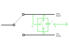 Or wire the circuits differently. Currently the feed for the dipped and main beams is the same, all the switch is doing is flicking between the two.
