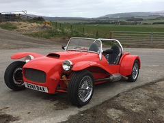 What a refreshing change.........I love the style you have gone for ! The whole thing harks back to what sevens looked like in the beginning. I have had two cars with clam shell wings , a Caterham and an F27 , my current car , an MK Indy has cycle wings in carbon fibre. Now I don't usually care for wire wheels , personally , but they look stunning on your car. The steering wheel is also very nice.......is it a particular make ? You should be proud of your efforts.....the whole package works really well.