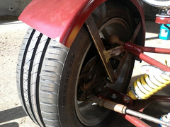 got rad mounts redone and fan wired up , got the front wing stays made, painted, fitted ran the engine up properly to working temps, a small drip