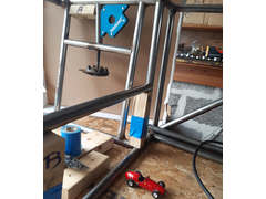Woodworking this weekend building the vertical clamps to hold in place the first of the chassis hoops (over radiator location). Chassis hoop made up