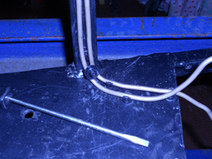 This one is very dark, but you can just make out the P-clip on the chassis on the handbrake cable.