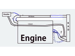 -Large 30-35mm hose out of stat, round 180 bend at C, and into rad, all at about bonnet level