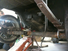 Axle (from memory) should be on top of the springs and have a diff in it somewhere so this THING must be front wheel drive ...... OMG