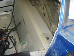 The fuel filler will be under a removable panel next to the loose panel (fuel pump cover) on the horizontal bulkhead .
