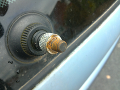 I've got a "new" one from the scrapyard, and got the rusty nut off the spindle, but there's a metal chunk under the thread