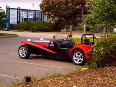 On my way up to admit defeat and get an estimate for having my car fixed I saw a red and black 7 with a silver bonnet sat in the carpark of Pirtek