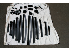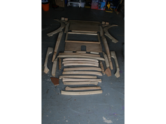 My final update for now is progress on the wood frame for the body tub. The following is the full set of parts, a number of which have complex compound curves