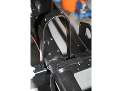 I reassembled the rear springs and then put the rebound hoops and axle on. This identified a problem as you can see in the next photo. The axle was sitting too far forward and pressing against the hoop.