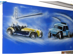A friend of mine has painted a picture of two of my old cars they where both named the Hustler and i thought i would share it with you all