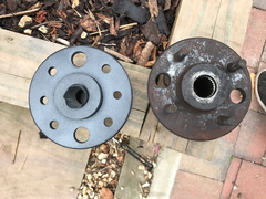 front flange cleaned down, drilled 4no 14mm holes not much weight loss but they look