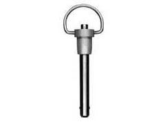 A bit more sophistimacated than an "R" clip. Pushing in the button on the top releases the two sprung ball bearings which then allow it to