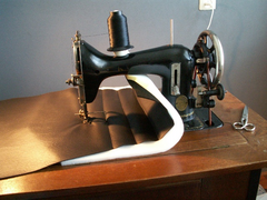 It’s a while ago, time for a update. Bought an old antique sewing machine last summer. Ordered some vinyl, foam and more small stuff. Did practice a