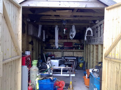 removed the rally car from the garage and covered her up. Made space for the new chassis build.