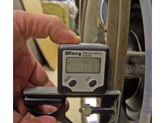 I then hold a straight edge vertical against the wheel rim and it measures the angle between