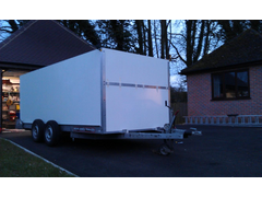 Trailer MAM is 1600. Unladen mass is 400kg. Box should be (according to service metals densities) between 200 and 250 kg. Add 100kg for other fixtures