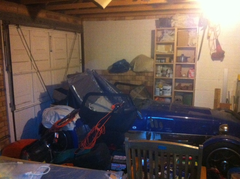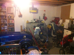 One way to brighten up your Garage is to paint all the walls white + paint floor in a light colour too