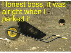 Made me think of a Reliant Robin convertible with twin exhausts. Every time I park my barrow I get a welly full of gobbo, I can't understand it