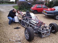 engine is honda 2.7 (rover 800). That one is the spare one which is empty (except crank) and undone so i can move it in and out of the chassis by