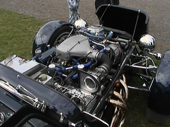 Lotus Seven Series 3, massively strengthened live axle, Hart 420 engine, sequential Quaife transmission. Wide magnesium rims and hand-cut slicks.
