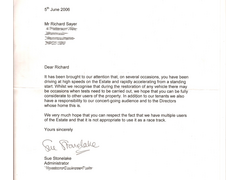 Thought people may find the attached letter amusing. Its from the business park where i rent a workshop. Race track! me? Never!