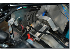 Advantage of both weight, standard battery leads from bike and regulator sits by battery so gets lots of passing air.