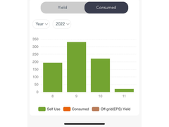 I am guessing I use on average around 2800Kw/yr (7KW/day). Mostly in the evenings for cooking/lighting/shower
