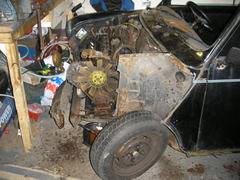 so after a few hours work, the front of the mini has gone, and the hardest part was to remove the roller pin from the gearlinkage, which i forgot to