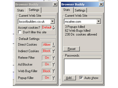 The pic below is the 2 views of my Browser Buddie which is part of McAfee Net Security, allows you to quickly allow or disallow popups and