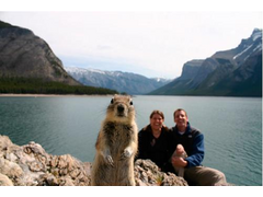Is that Lake Louise? If it is, or a similar lake in Canada I can confirm they have lots of the little ground squirrels, and they are very inquisitive