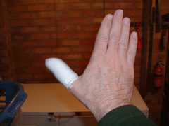 "Oh bother" I said... then spent an hour or so at Ipswich Hospital's A&E while my thumb was taped up - nice flap of skin lifted on